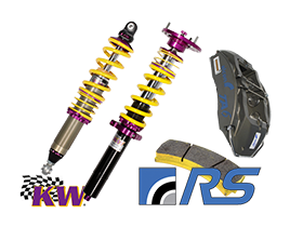 Amortiguadores coilover KW, Bilstein, Öhlins. PInzas AP y Alcon. Pastillas Pagid, Ferodo, Carbone Lorraine.
